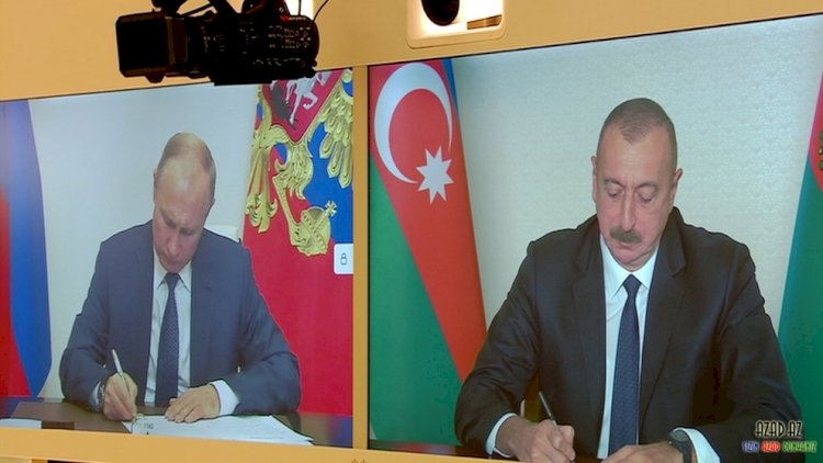Biz, Azərbaycan Respublikasının Prezidenti İlham Əliyev, Ermənistan Respublikasının baş naziri Nikol Paşinyan və Rusiya Federasiyasının Prezidenti Vladimir Putin aşağıdakıları bəyan edirik: