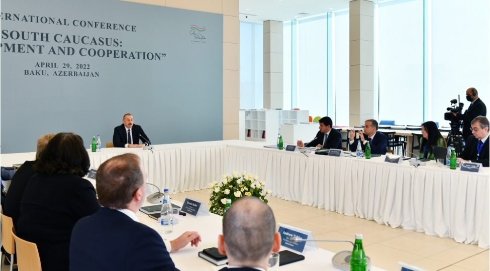 Azərbaycan Respublikasının Prezidenti cənab İlham Əliyev konfransda çıxış edərək dedi:-“Münaqişədən sonrakı inkişaf mövzusuna toxunmazdan əvvəl başa düşülməlidir ki, bizim torpaqlarımız 30 ilə yaxın işğal altında olub. Biz ailə üzvlərini itirmiş, özlərinin doğma yurdlarında yaşamaqla bağlı fundamental hüquqlardan məhrum edilmiş insanların taleyini bir kənara qoya bilmərik. Biz Ermənistan ordusu tərəfindən törədilmiş vəhşilikləri unuda bilmərik. Biz heç vaxt Ermənistan və qondarma “Dağlıq Qarabağ rejimi”nin rəhbərliyi tərəfindən törədilmiş Xocalı soyqırımını və günahsız qurbanların xatirəsini unutmayacağıq. Bu səbəbdən həmin yaddaşın bizimlə qalacağını anlamaq olduqca vacibdir. Bu yaddaş qəlblərimizdə yaşayacaq. Eyni zamanda, biz gələcəyə baxmalıyıq. İşğaldan azad olunmuş ərazilərdəki dağıntıların miqyası bizim ən pis gözləntimizdən də qorxuncdur”.