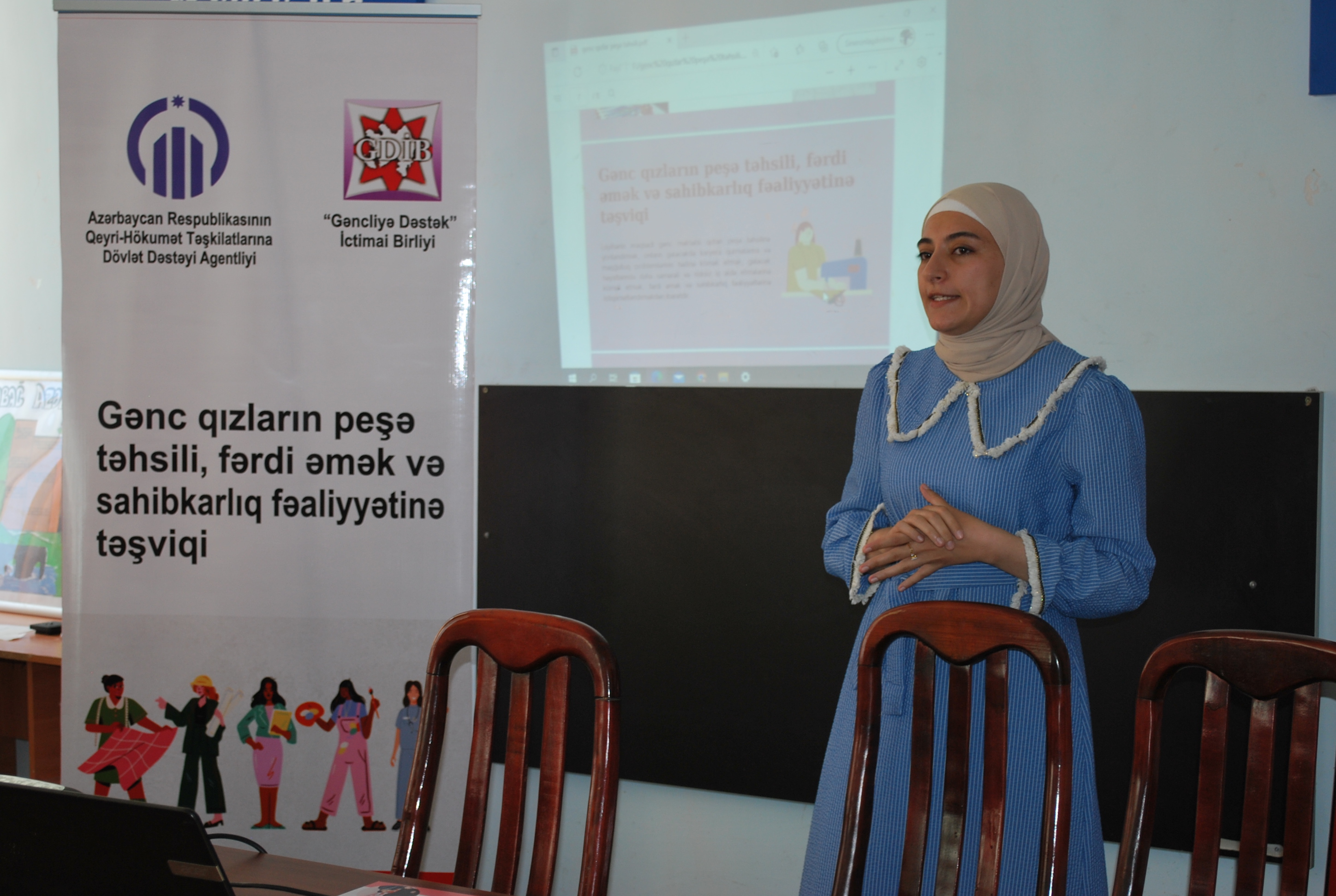 “Gəncliyə Dəstək” İctimai Birliyi Azərbaycan Respublikasının Qeyri-Hökumət Təşkilatlarına Dövlət Dəstəyi Agentliyinin dəstəyi ilə “Gənc qızların peşə təhsili, fərdi əmək və sahibkarlıq fəaliyyətinə təşviqi” adlı layihəsi çərçivəsində ilk Maarifləndirmə görüşünü 27 sentyabr 2020-ci ildə həyata keçirib. Zərdab şəhər 2 saylı tam orta məktəbində keçirilmiş görüşdə33 məktəbli gənc qız iştirak edib.