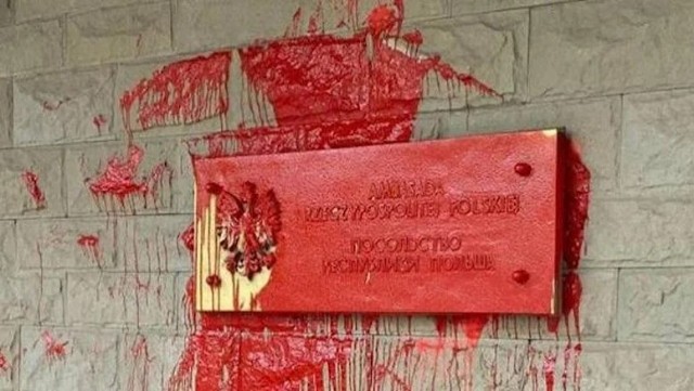 Rusiyanın paytaxtı Moskvada Polşa səfirliyinə bir qrup tərəfindən qırmızı boyalı hücum təşkil edilib.