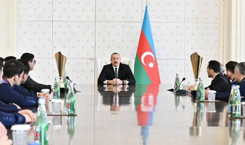 Prezident İlham Əliyevin Macarıstanda keçirilmiş Güləş üzrə Avropa çempionatında iştirak edən Azərbaycan millisinin üzvləri ilə görüşü.